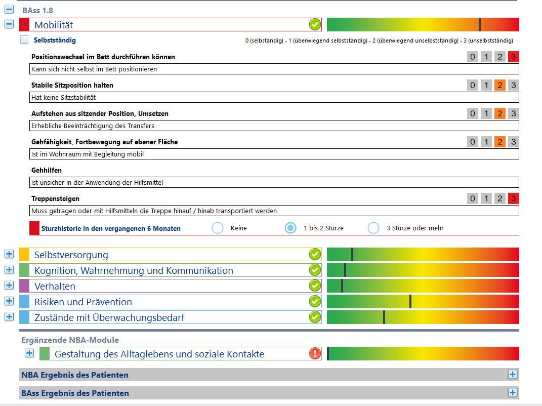 Das BAss nutzt integrierte Mappings, die über die reine Pflegeanamnese hinausgehen. Relevante pflegerische Skalen werden automatisch berechnet – ganz ohne zusätzlichen Erhebungsaufwand. Hierdurch unterstützt es zuverlässig verschiedene Ausleitungen und Kodierprozesse.