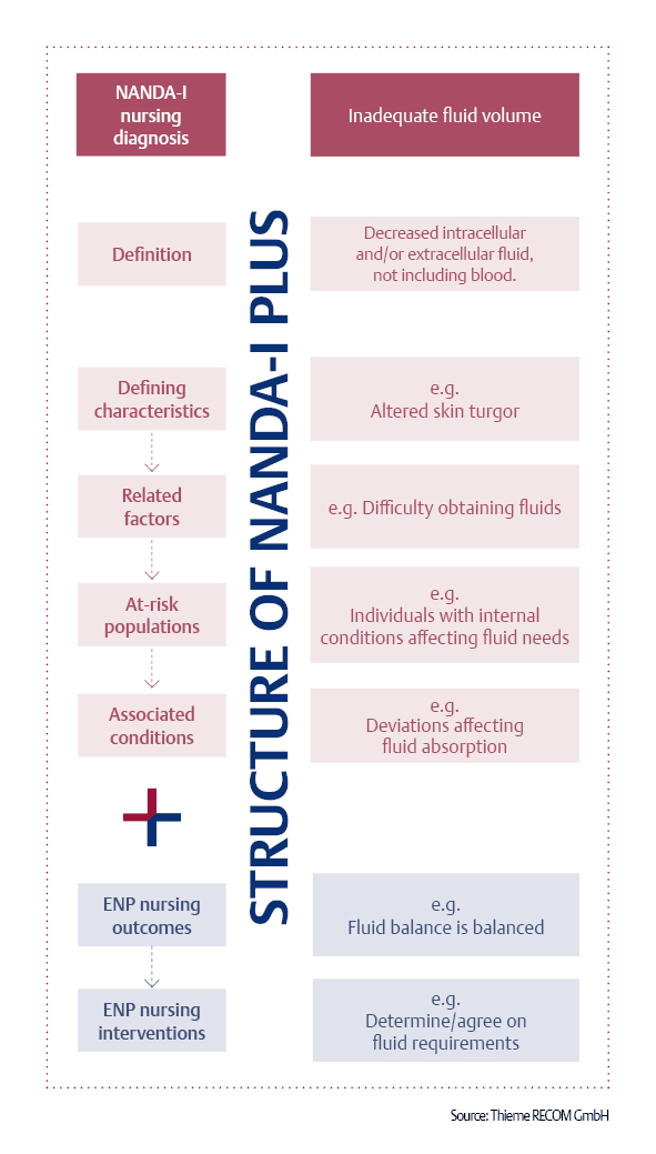 NANDA-I PLUS represents a new nursing terminology as a database: a content mapping of the nursing terminologies ENP and NANDA International. The ENP nursing terminology and classification system provides you with detailed practice guidelines consisting of the ENP nursing diagnosis, the associated characteristics, etiologies, resources, nursing outcomes and finally the nursing measures (interventions). The well-known NANDA-I structure is characterized by: established nursing diagnoses with the associated defining characteristics, related factors/risk factors and categories of associated conditions and at risk populations. However, outcomes and interventions are not specified, which is why combining both nursing terminologies into NANDA-I PLUS offers decisive added value for your work.