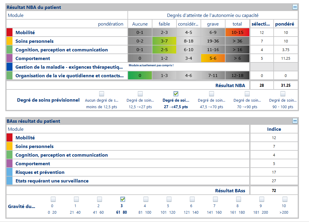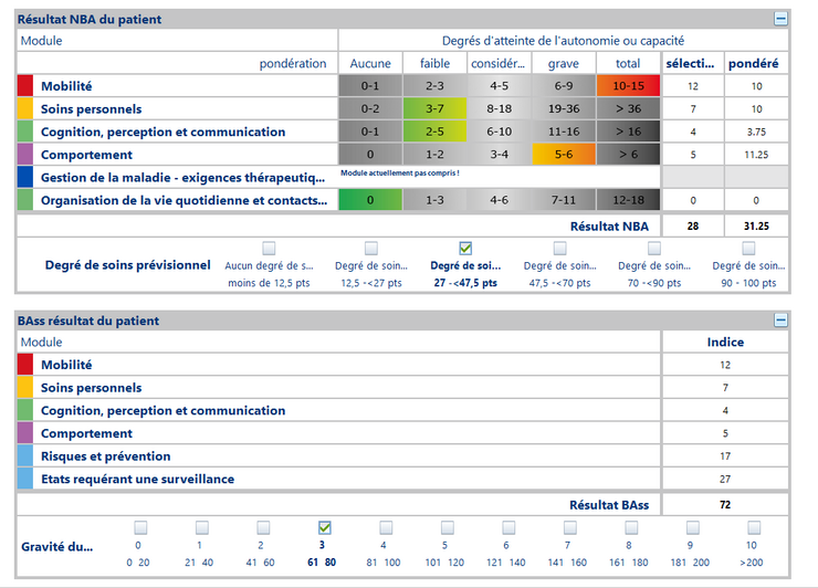Grâce à la saisie des modules essentiels du NBA (nouvel outil d’évaluation), il est possible d’obtenir un premier pronostic pour le degré de soins et les besoins de soins post-hospitaliers probables ce qui facilite des aspects importants de la gestion de la sortie.