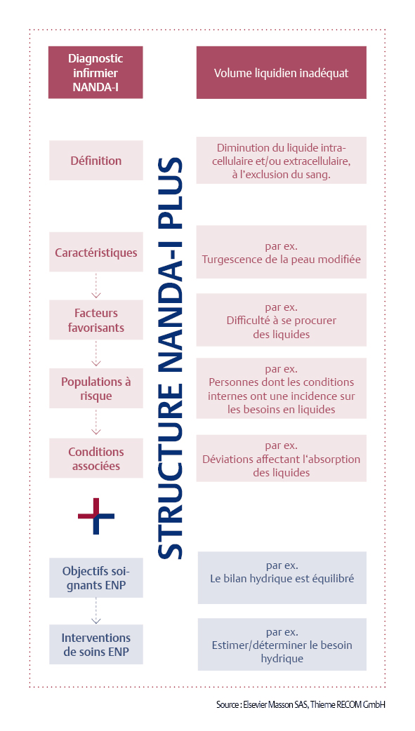 NANDA-I PLUS, c’est un nouveau langage soignant sous forme de base de données : un mapping astucieux des langages soignants ENP et NANDA International. Langage soignant et classification, ENP propose des lignes directrices de pratique détaillées, composées d’un diagnostic soignant ENP avec les caractéristiques, étiologies, ressources, objectifs puis interventions de soins. La structure NANDA-I connue comprend des diagnostics infirmiers avec caractéristiques, facteurs favorisants correspondants, ainsi que les conditions associées, facteurs de risque et populations à risque. Les objectifs et interventions ne sont toutefois pas indiqués – c’est pourquoi la fusion des deux langages de soins en NANDA-I PLUS apporte la plus-value décisive à votre travail.